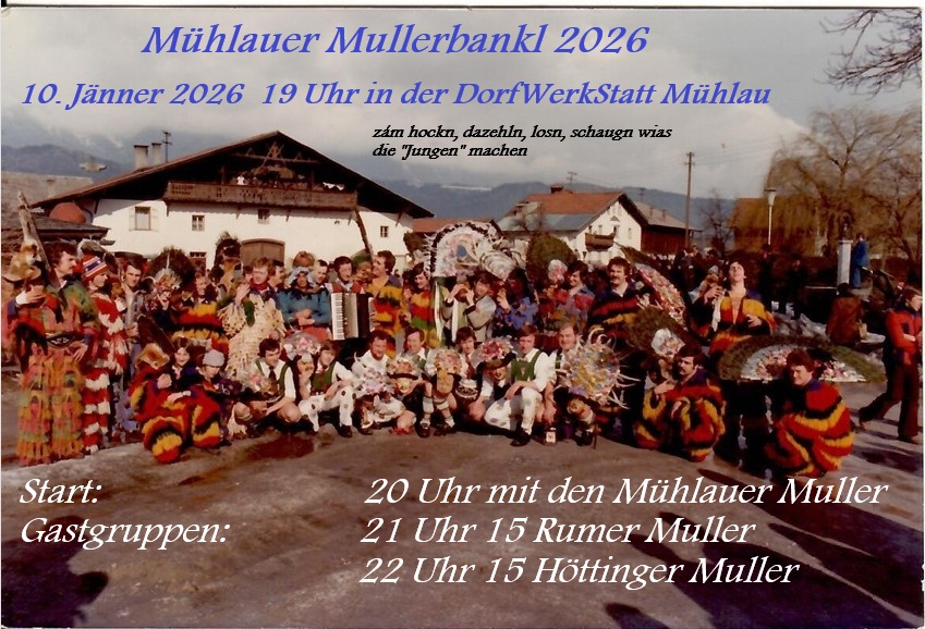 Die DorfWerkStatt Mühlau und die Brauchtumsgruppe Mühlau laden wieder herzlich ein !